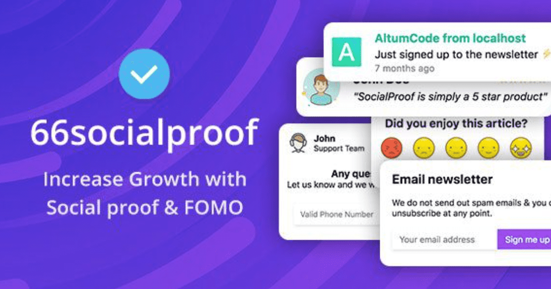 66socialproof Free (former SocialProofo) is a fully loaded toolkit with marketing tools, plugins, and pop-ups to create FOMO, Social Proof, Engage and keep your website visitors.