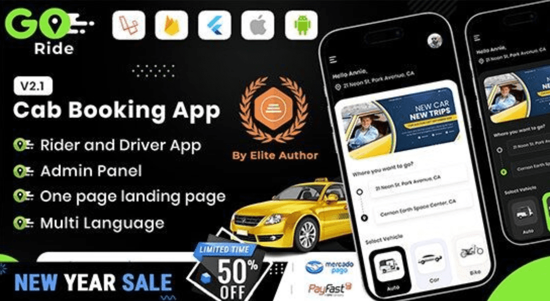 GORIDE | InDriver Clone | Solution complète de réservation de taxi Flutter avec option d’enchères CodeCanyon 46723468.