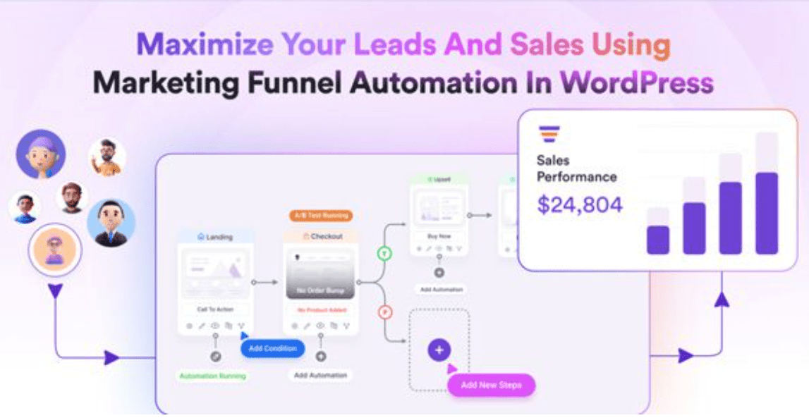 wordpress funnel, sales funnel, marketing automation, lead generation, checkout funnel, order bumps, upsells, webinar funnel, A/B testing, woocommerce funnels, affiliate funnel, membership funnel, page builder, conversion optimization, email automation, landing page, one-click upsell