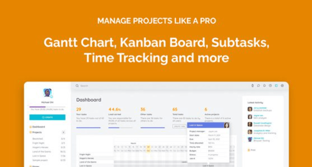 📊 Visual Timelines (Gantt Charts) – Plan your project schedule with interactive drag-and-drop timelines for a clear overview of deadlines and dependencies.